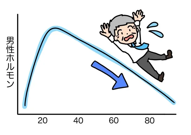 年齢とともに、男性ホルモン「テストステロン」の分泌量は徐々に減っていきます。